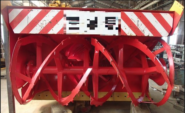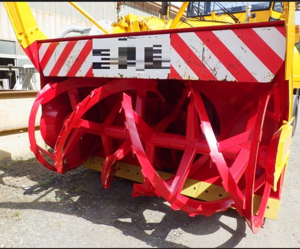 ロータリ除雪車はオーガと呼ばれる回転装置によって高く積もった雪堤を切り崩しながら進み、ブロア(回転する羽根)によって雪を飛ばすものになります。県道や国道といった道路幅の広いところによく使用され、皆さんも各地積雪量のニュースの背景画像でこちらが稼働しているのを見たことがあるのではないでしょうか。