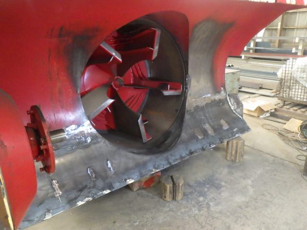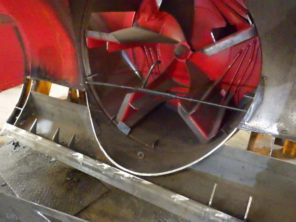 インペラ枠の溶接が終了しましたら、ブレードの背面部分であるプレートを根幹部とインペラ枠に合わせて元の状態と同じ形に湾曲させたプレートを溶接していきます。
