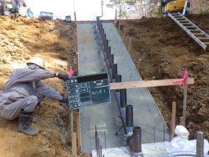 先に据え付けていた底樋管周りのコンクリート打設が終了すると次は残りの斜樋管と、土砂吐けゲートの据え付け作業です。 斜面に対して斜樋管を平行に溶接設置していきます。初めに据え付けしていた一番下の土砂吐 […]