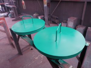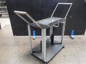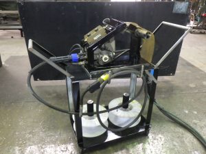 工場の職員が製作し実際に使用している溶接機用の可動式台です
