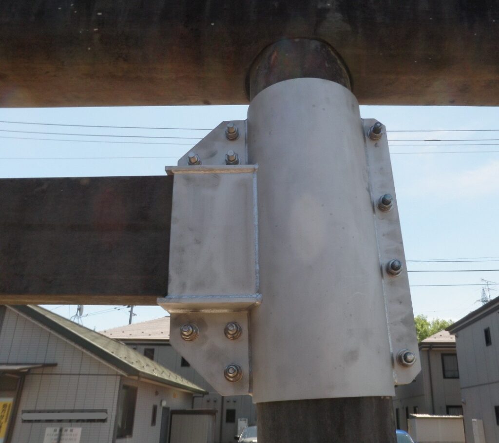 古風な鳥居もボルト止めの修理をするとなんだか近未来的な仕上がりでかっこいいですよね!