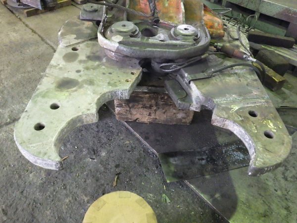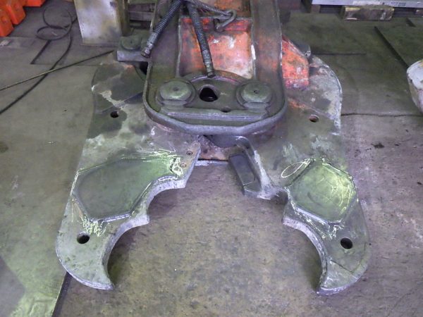 上述のコンクリートクラッシャーですが、エーティー建機様より破損してしまったとのご連絡があり、現地へお伺いしてみると圧砕箇所が中央部より折損してしまったため改修をお願いしたいとのことでした。